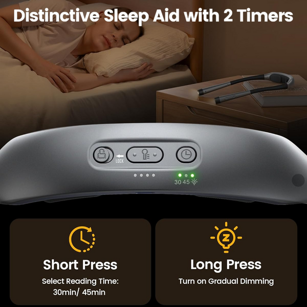 Das ergonomische Nacken-Design mit weichen Polstern sitzt besonders angenehm und verhindert ein Wackeln im Liegen. Jeder Arm lässt sich unabhängig steuern, sodass du deinen Lichtwinkel präzise einstellen kannst, ohne andere zu stören.